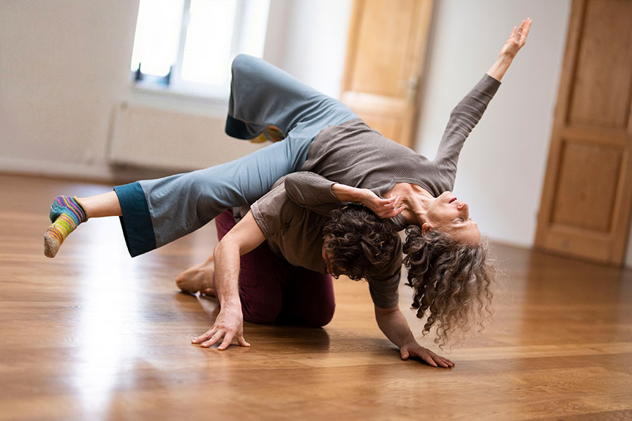 Kontaktní improvizace. Tanec, v němž můžeme rozšiřovat své obzory a dávat svým tušením fyzické naplnění. Naslouchání si v pohybu, volnost a přitom dokonalá souhra. Pozorujeme, jak dlouho je třeba být v kontaktu, jakou kvalitu musí kontakt mít, aby se naše systémy spojily v jeden celek a propojilo se naše vědomí. Hledáme, jak vstoupit do kontaktu a být v něm plně, aby náš nervový systém mohl přijmout partnera jako součást nás samých.